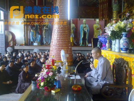 2009年8月16日至22日,广东省惠州市罗浮山华首台古寺联合香港佛教青年联合会在惠州罗浮山华首台古寺举行佛教夏令营八关斋戒及短期出家活动。香港佛教青年联合会导师畅怀法师主持法会。广东省惠州市龙门县佛教协会副会长、龙门万寿古寺住持心廉法师应邀主讲《八关斋戒之功德利益》,来自惠州、深圳、香港等地的众多居士信众参加了本次法会。(图片来源:心廉法师博客)