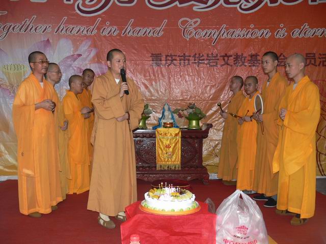 中国佛网讯:2009年9月5日9时30分,华岩文教基金会每月一次的会员生日祈福活动在弘法楼一楼隆重举行。