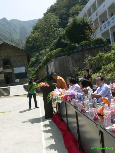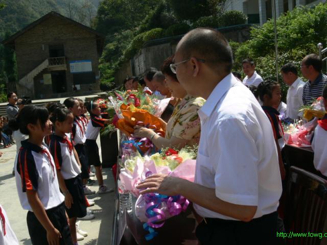 (中国佛网讯)2009年9月23日重庆市华岩文教基金会资助秀山县隘口中心小学学习用品和资金在隘口小学操场举行。重庆市民宗委巡查员洪道元、重庆市佛协副会长、重庆市华岩文教基金会理事长道坚法师、重庆市佛教慈善功德会办公室主任庞国婉女士、秀山县副县长陈丽萍、秀山县宣传部部长吕英、隘口中心校校长洪天湖及全体师生、秀山县爱心人士等参加捐赠仪式。