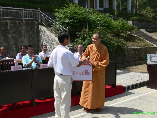 道坚法师代表重庆市华岩文教基金会为秀山县隘口中心小学捐赠学习用品