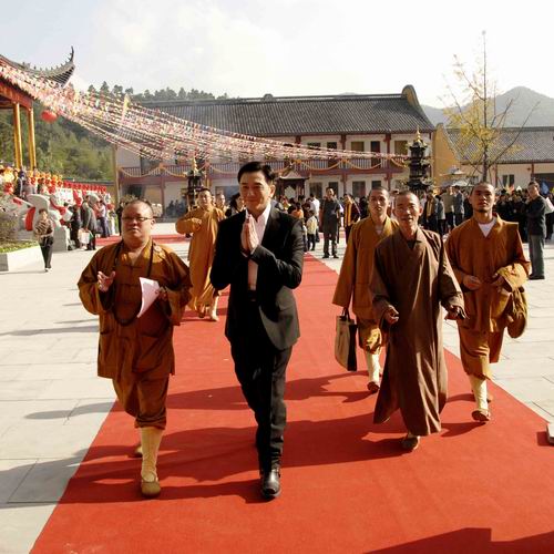 10月25日,香港著名影视歌三栖明星温兆伦现身浙江奉化蟠龙寺,为大雄宝殿佛像开光庆典做主持,引起现场一片骚乱。