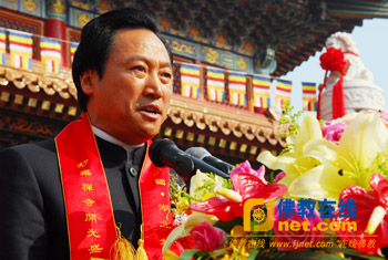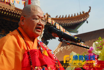 庆典仪式由湖北省佛协常务副会长见忍法师主持,黄梅县县委书记吴海涛致欢迎词,中国佛教协会国际部副主任普正法师宣读了中国佛教协会会长一诚长老贺电并贺辞;湖北省民宗委主任谭徵在、湖北省佛协会长正慈法师以及来自韩国日本的二位法师分别致贺辞。