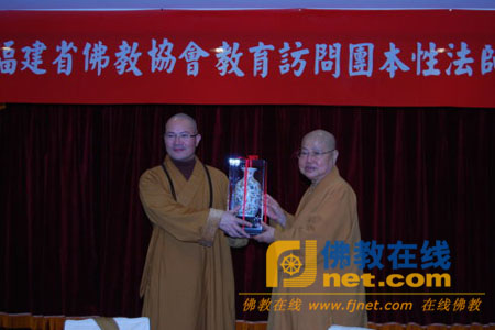 2009年11月19日,为加深闽台两地佛教教育,福建省佛教协会教育访问团一行17人,在福建省佛教协会副会长兼秘书长本性法师的带领下,到台湾进行佛教僧伽教育友好交流。台北县佛教会理事长绍定法师率领佛教会理、监事热情接待了访问团一行。
