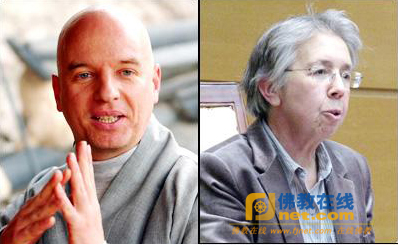 Chung An法师(左)及佛教专家Martine Batchelor(右)在探讨会上发表讲话