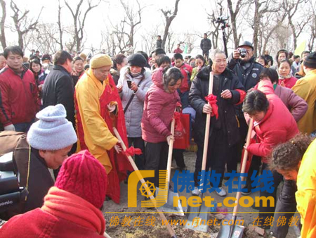 果光法师为奠基仪式主法,并连同合愿法师、常信法师共同为奠基仪式洒净。
