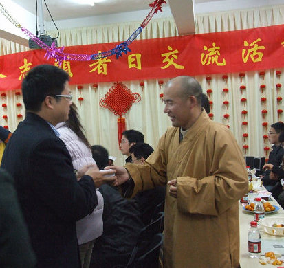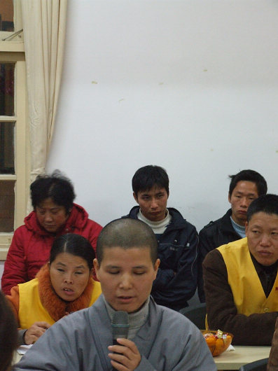为了感谢东林慈善志愿者长期以来任劳任怨的付出及社会各界志愿者们对佛教东林慈善事业的帮助,东林慈善总部在12月5日晚上7:00在慈善门诊六楼隆重举办世界志愿者日交流活动。参加活动的单位有九江市爱心志愿者之家、共青团市委、九江市红十字会、九江电视台市民议事厅、九江生命科学院,信息科学院、浔阳义工联合会,东林慈善等九江市各界的志愿者代表们,活动在东林慈善志愿者负责人张佳乐居士的主持下显得活泼有趣,气氛一次又一次地被推向高潮,来自各界的志愿者代表们也纷纷交流自己的心得体会,来自九江学院的包老师也谈了谈自己的感受,她说,她来到这里的心情只有两个字可以形容,那就是”感动”,她给大家谈到了自己在东林寺过堂时所掉的一粒饭,行堂的人立即把它捡起来放到了自己的嘴里,这种无私,无我的行为是她在社会上很难看到的,她还谈到自己参与东林慈善的居家关怀活动后心灵的提升及灵魂的洗涤,她说,比如汶川地震后的援助,那些志愿者忘我的地去洗厕所、搞卫生的精神是有钱也买不到的,通过东林慈善,她看到了佛的慈悲,从而也改变了她的人生观,同时她也非常地感谢东林慈善。