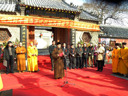 淄博市宗教事务局领导及各市、区宗教领导出席了剪彩仪式。山东省佛教协会副会长、淄博市佛教协会会长、普照寺住持仁昌法师等到会并讲话祝贺。
