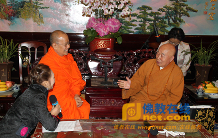 中佛协副会长印顺法师,中佛协秘书长王健,中佛协副秘书长张琳、卢浔,中佛协综合研究室主任明杰法师,《法音》编辑部主任桑吉,中佛协国际部副主任李贺敏、王立,中佛协会长秘书性然法师,广济寺监院道藏法师等陪同会见。国际部一课罗喻臻课长、泰国驻华大使馆威瓦担任翻译。(佛教在线记者 从梓 现场报道)