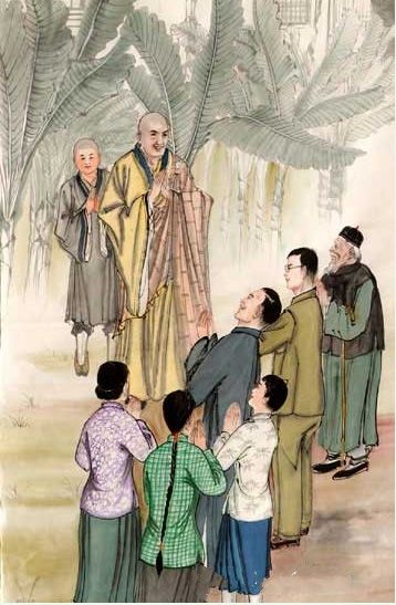 一九二七年十月著名作家叶圣陶先生由弘一法师引见在上海闸北太平寺,同周子固李石岭等七八人拜谒大师,叶后作两法师一文评赞说弘一印光两法师,一个是水样的秀美飘逸,而一个是山样的浑朴凝重 。