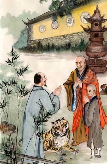 一九三六年全国著名画家张大千之兄张善子,擅长画虎,将自己在苏州狮园养的一只老虎牵到大师跟前,让大师给老虎说三皈依并赐法名格心,从此这只猛兽之王老虎都变的十分温顺,实乃佛心灵感 。
