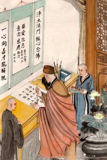 一八八二年,大师在湖北莲花寺中晒经,偶读残本龙舒净土文,益知净土一法,圆赅万行,普摄群机,言简义周,词详理备,为接引初机第一要书,若欲普度众生,此书万不可忽视,从此一心专致诵念佛号,身行化他,以净土为归奠定基 。