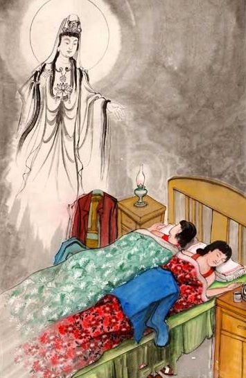 一九三六年十月大师在上海觉园举行丙子护国息灾法会演讲,某晚年仅十八岁的上海女中学生杨信芳与张孝娟睡觉中梦见大士招手,告诉她大势至菩萨现在上海,教化众生,汝何昏迷不去闻法,又道印光和尚是大势至化身,四年后化缘毕矣,杨惊醒把梦告知张,次日申报刊登印光在上海觉园主持法会,她两同去听讲并一同皈依,一九三七年春杨去苏州谒师告以梦,大师严词呵斥,莫瞎说,莫瞎说,以凡滥圣,招人毁谤,此梦万不可对人说。一九四零年大师圆寂时,杨女士痛哭流涕,才把此梦说于大家,仔细推算从一九三六年十一月至一九四零年十一月四日大师圆寂,整整四年时间,真是佛其灵,梦其真 !