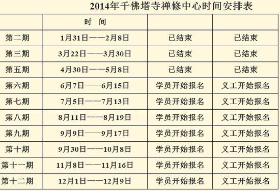 2014年千佛塔寺禅修中心时间安排表安般念(观呼吸)报名须知