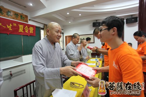 秋爽大和尚为夏令营学员颁发证书