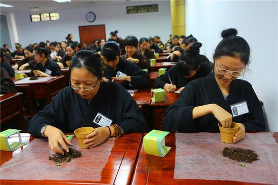 修道会还特别安排了“手画菩萨像”、“种植罗汉松”、“刚达尔的光”等意义特殊、但别开生面的课程,让新戒菩萨于细微中体察佛法即心法,生活中有佛法。细细临摹观世音菩萨圣像的同时,观察菩萨庄严的法相,观想自己用清净心与恭敬心成就如此德相;仔细地种下罗汉松的种子,样子仿佛正在静坐的出家人,碧绿的种子就是发愿成为菩萨的初心,要用很多爱心和智慧来呵护她;来自非洲衣索比亚的故事,教会我们时刻感恩,分享喜悦、鼓励与体贴,成为微笑的菩萨。活泼生动的方式,让大家从内心深处真诚发愿,发菩提心,践行大爱,成就众生。