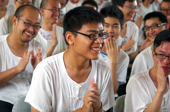 一位女营员是做小学教育工作的,她在发言中未语泪先流,哽咽着说,“我虽然无缘见到大家无限敬爱的生活禅导师净慧长老,但在四祖寺的正法气氛里,在明基大和尚等法师们的言行举止上,我看到了老和尚的无限慈悲和智慧,我看到了佛!”另外一位同样身为小学教师的营员站起来说,“我过去总是向外求,追求这个追求那个,即使学佛也是为了求佛菩萨保佑,参加这次夏令营才真正深刻反省自己:怎么就没有想过自己可以为别人做些什么呢?“