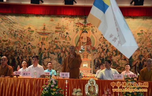 致辞结束后,广州市佛教协会副会长、华严寺方丈印觉大和尚宣布第四届华严心大学生夏令营正式开营并授旗。