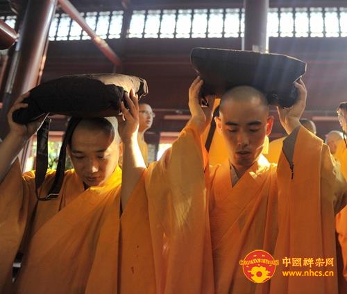 今天是农历九月十六,南华禅寺2014年二部僧三坛大戒法会的第二天,上午举行了请引礼、引赞法会以迎请引礼法师、引赞法师。请师仪式后,诸位引礼法师正式接手新戒戒期中的管理,随后诸引礼法师对新戒们进行编班。