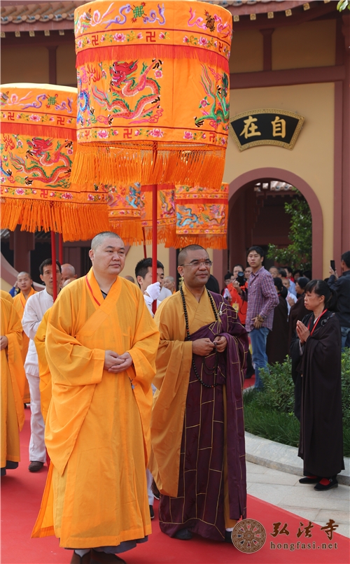出席本次活动的领导嘉宾及高僧大德有:广东省委统战部副部长、省民宗委主任陈小山,深圳市统战部副部长兼民宗局局长姚任,河源市委常委、统战部部长张丽萍,澳门佛教总会理事长、澳门菩提禅院住持、香港荃湾南天竺寺住持健钊长老,香港佛教联合会执行副会长、香港西方寺住持宽运大和尚,台湾菩萨寺主持、美国国际菩萨僧伽会会长慧光大和尚,中国佛教协会理事、广东省佛教协会副会长、梅州市佛教协会会长、梅州千佛塔寺方丈明慧大和尚,深圳弘法寺首座一如长老,深圳弘法寺当家师智空法师,暨南大学校长胡军等。