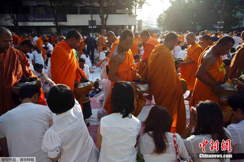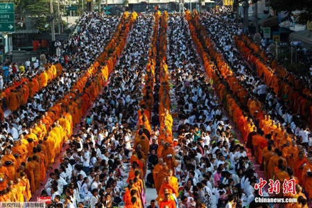 泰国万名僧侣参加布施祈福仪式 捐赠将分给各地僧众