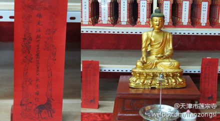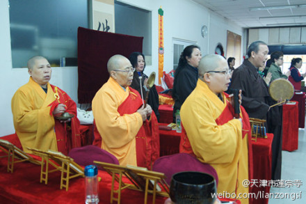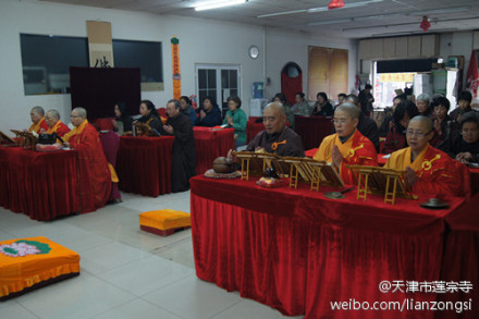 2014年11月23日下午,天津市莲宗寺常住法师受寺院住持圣慧法师嘱托携众居士,为四川省甘孜藏族自治州康定县地震灾区礼拜《地藏经》一堂。为地震灾区设立消灾祈福牌位。祈愿地震灾民,伤者早日康复,愿亡者离苦得乐、往生净土。愿灾区生活早日恢复正常。