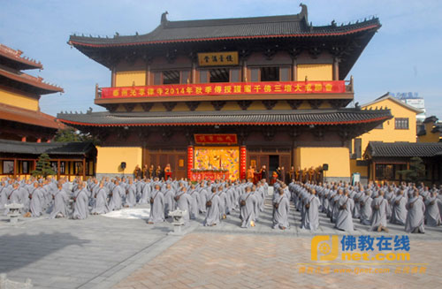 2014年11月7日,江苏省泰州光孝律寺护国三坛大戒法会初坛正授沙弥戒仪式隆重举行。来自全国各地300余人的戒子参加了此次盛典。