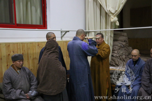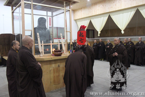 2014年11月26日,农历十月初五,为达摩祖师诞辰纪念日,禅宗祖庭少林寺举行一年一度的冬季“精进七”禅七法会。当日下午,起七仪式在少林寺禅堂圆满举行。此次禅七共七个七,为期四十九天。参加本次禅七的法师有103单。本次禅七的首座是绍云长老、修圆法师、本如法师,西堂是耀融法师、悟醒法师、隆中法师,后堂是延典法师,堂主是普明法师、仁觉法师,维那是延榕法师,知客是延典法师。