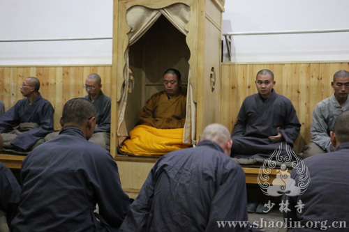 当天下午三点,参加此次“禅七”法会的“禅和子”们在礼祖仪式之后,前往方丈室向永信方丈告“生死假”,礼请永信大和尚开示。