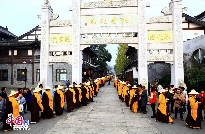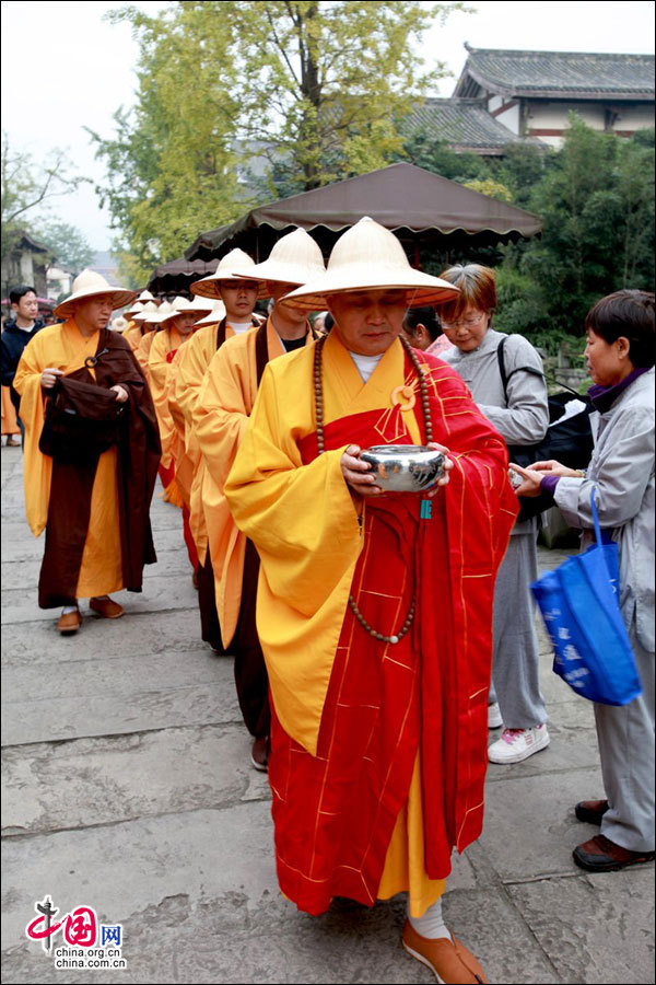 四川省佛教协会第19次传戒法会之"千僧托钵"活动举行