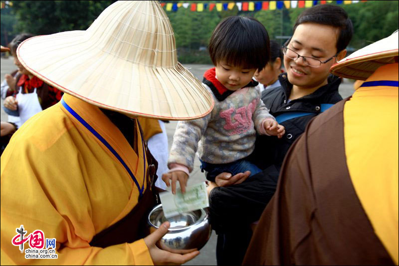 托钵行脚,接受人们奉献的食物和生活必需品。通过最简单的方式教导出家人修习少欲知足的最基础方法。托钵也可以去除骄慢,去除自己的贪心,去除瞋心培养慈心,也让施主有机会修习善业。(文:伍策、袁士洪)