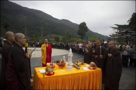 放生现场11月09日上午,安福寺与雨花斋联合举办了继安福寺开光之后的第一次大型放生法会。法会由安福寺住持上达下照法师主持,安福寺、七甲寺常住僧众,以及从温州各地赶来参加放生的信众居士,乘坐约十辆大巴以及未统计具体数量私家车,总人数超过了一千人。