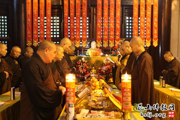 2014年11月1日上午,应众居士要求,江苏省昆山市佛教协会会长、华藏寺方丈秋风法师为上海和昆山两地众居士信众授受三皈五戒,数百位居士参加此次法会。