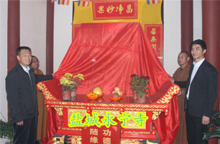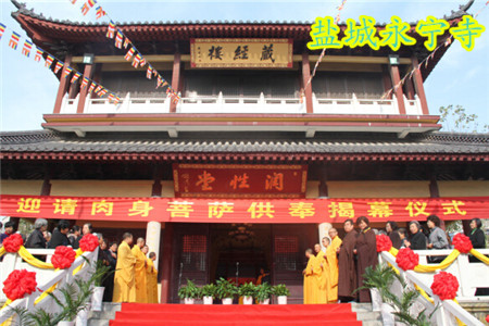 2014年11月5人上午,位于江苏省盐城市永宁路的盐城护国永宁寺在润性堂前广场隆重举行迎请肉身菩萨供奉揭幕仪式。
