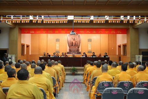 2014年11月5日下午,中国佛学院首届博士研究生开学典礼在教学楼大礼堂隆重举行。出席开学典礼的领导、嘉宾有:中国佛教协会会长、中国佛学院院长传印长老,国家宗教事务局四司戴晨京司长,中国佛教协会副会长、中国佛学院常务副院长湛如法师,中国佛教协会王健秘书长,中国社会科学院学部委员、佛教研究中心主任、博士生导师魏道儒教授,中国人民大学佛教与宗教学理论研究所执行所长、博士生导师张风雷教授,中国佛教协会张琳副秘书长、宗家顺副秘书长,国家宗教事务局四司院校处赵红宇处长,中国佛学院张厚荣副院长、副院长向学法师、副院长兼教务长宗性法师等。开学典礼由宗性法师主持。