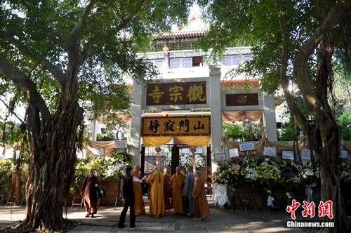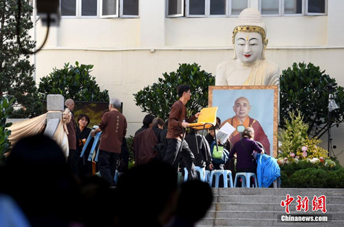 2014年11月21日,香港佛教联合会会长觉光长老圆寂舍报,“觉光长老圆寂追思赞颂仪典”在香港观宗寺举行。(张宇 摄)