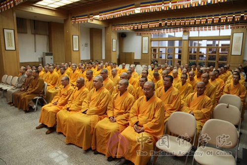 2014年11月5日下午,中国佛学院首届博士研究生开学典礼在教学楼大礼堂隆重举行。出席开学典礼的领导、嘉宾有:中国佛教协会会长、中国佛学院院长传印长老,国家宗教事务局四司戴晨京司长,中国佛教协会副会长、中国佛学院常务副院长湛如法师,中国佛教协会王健秘书长,中国社会科学院学部委员、佛教研究中心主任、博士生导师魏道儒教授,中国人民大学佛教与宗教学理论研究所执行所长、博士生导师张风雷教授,中国佛教协会张琳副秘书长、宗家顺副秘书长,国家宗教事务局四司院校处赵红宇处长,中国佛学院张厚荣副院长、副院长向学法师、副院长兼教务长宗性法师等。开学典礼由宗性法师主持。