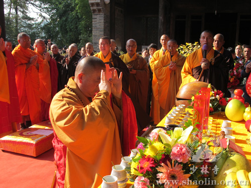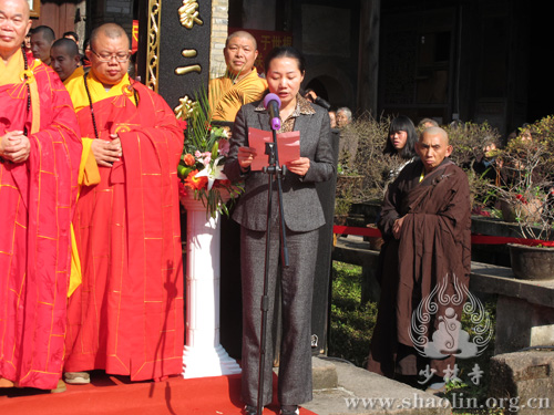 庆典仪式上,武夷山市委常委、统战部部长陈缃凤致辞,欢迎诸山长老及各位善信前来参加庆典仪式,并衷心地祝贺天心永乐禅寺观音殿落成典礼暨佛像开光庆典仪式获得圆满。