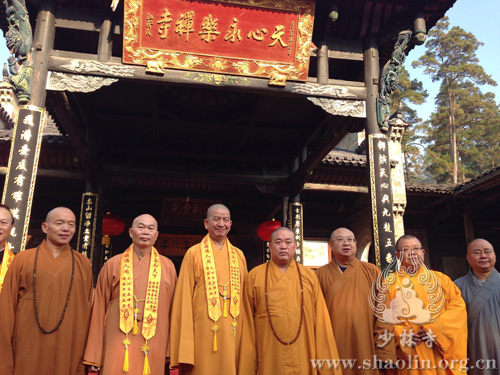 永信方丈与各位嘉宾在天心永乐禅寺前合影