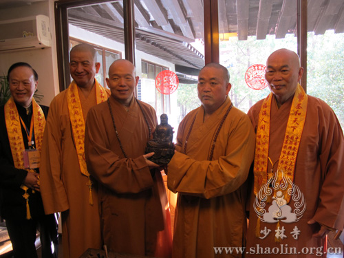 永信方丈向泽道法师赠送少林寺菩提达摩铜像