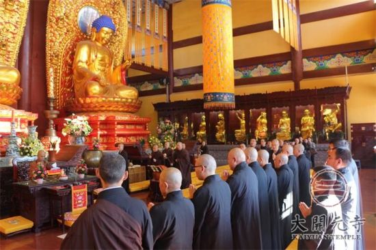 碧空如洗,冬阳高照,磬声阵阵,佛音袅袅,13位短期出家参加者跟着监院崇悲法师迎请明憨法师主法。明憨法师主持了受清净五戒和剃度仪式,并开示道:人身难得,佛法难闻,出家更是难上加难。王秋生等8人,在大开元寺做一段时间义工后,因个人因缘条件不同,暂时不能长期出家,发心参加短期出家。出家功德不可言说,佛经讲出家一日一夜的功德就可以在未来得辟支佛身。今天我们大开元寺常住为他们举行剃度和受清净五戒仪式,希望大家都能发心精进,学习佛法。