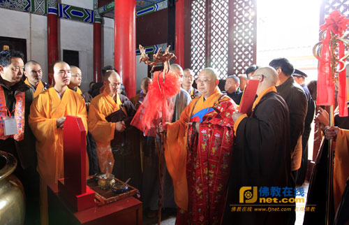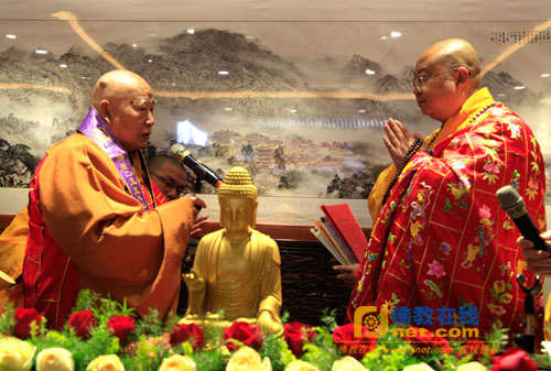 中佛协副会长、湖南省佛协会长、湖南长沙岳麓山寺方丈圣辉法师为正慈法师送位