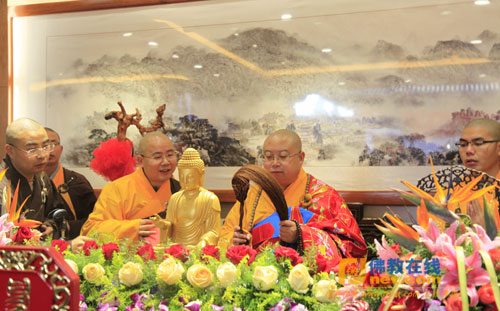 中国佛教协会副会长学诚法师宣读中国佛教协会贺电