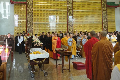 永固法师致辞时,赞叹悟德法师德行圆满,舍报往生,是多伦多佛教界的损失,多伦多佛教界少了一位带领、提携的大善知识。长老一生致力弘扬佛教,谦和、与人为善的力促教界团结共荣;缅怀悟德长老,感伤之余,唯有继续其心愿,佛教界团结弘扬佛教;正觉寺弟子遵行长老的教诲,继续在道业和菩提道上用功,才是对他老人家最好的送别。