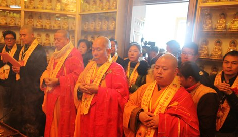 最后,全体起立,恭请各位领导、诸山长老、带众功德檀越为开光庆典剪彩。至此,江西抚州大金山寺金刚万佛报恩塔开光庆典功德圆满。