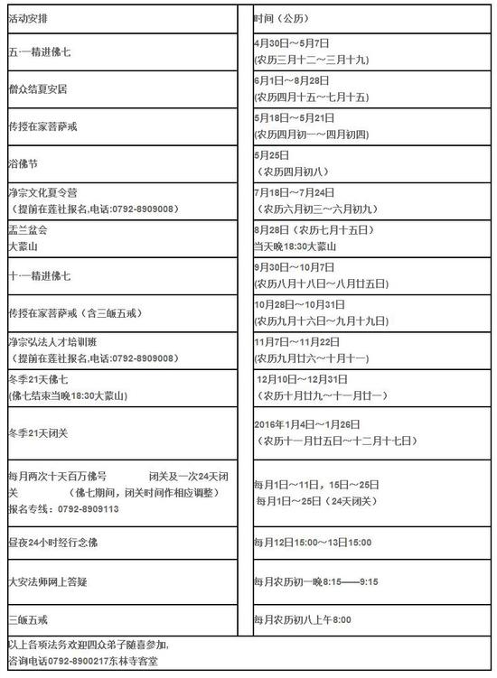 江西庐山东林寺2015年度法务活动安排法讯