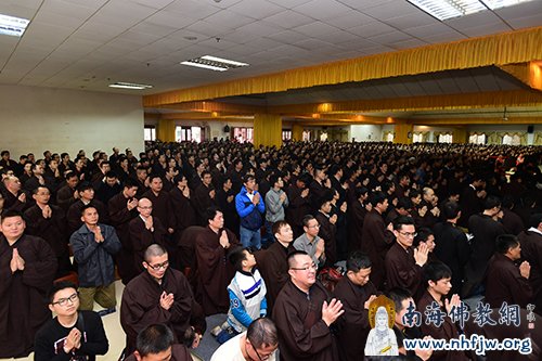 卧佛殿门口众人齐诵“南无本师释迦摩牟佛”圣号