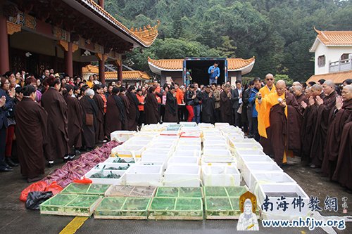 广东弘法寺阿弥陀佛圣诞日举行三皈五戒放生法会