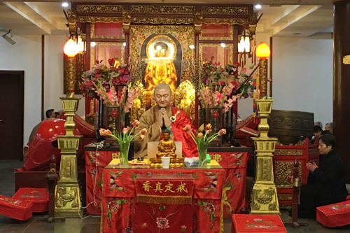 静安区统战部副部长、民宗办主任陆兴豪前来慰问,祝贺中观法师七日讲经弘法的圆满,并对居士林的工作给予了肯定,赞许佛教弘法活动正常开展,还和法师及居士林林员合影留念。