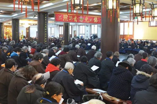 上海佛教居士林于3月2日至8日举行了2016年第一堂精进净七法会,参加的有550余位莲友,他们每日止语、摈弃妄念一心念佛,按修持仪规圆满完成了功课。法会还邀请了龙华寺首座中观法师每日来林为广大信众开示《楞严经观世音菩萨耳根圆通章》切要一小时。期间信众秩然有序、殷切喜悦地聆听了法师淳淳的慈悲开示。法会还每日组织了50余位护法义工安排中午的过堂午斋,参加者法喜充满。净七最后一天圆满后还举办了施放蒙山法会一堂结缘众生。