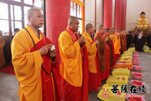 四众弟子列队恭迎主法法师(图片来源:菩萨在线 摄影:妙静)